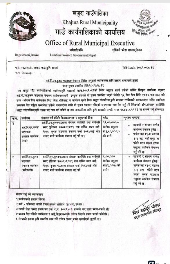 खजुरा गाउँपालिका अन्तर्गत सबै सहकारी संस्था लि.का लागि सूचना ।।