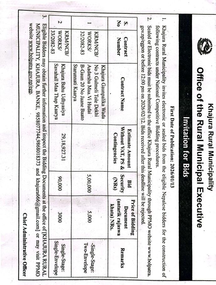 बोलपत्र आव्हान सम्बन्धि सूचना ।