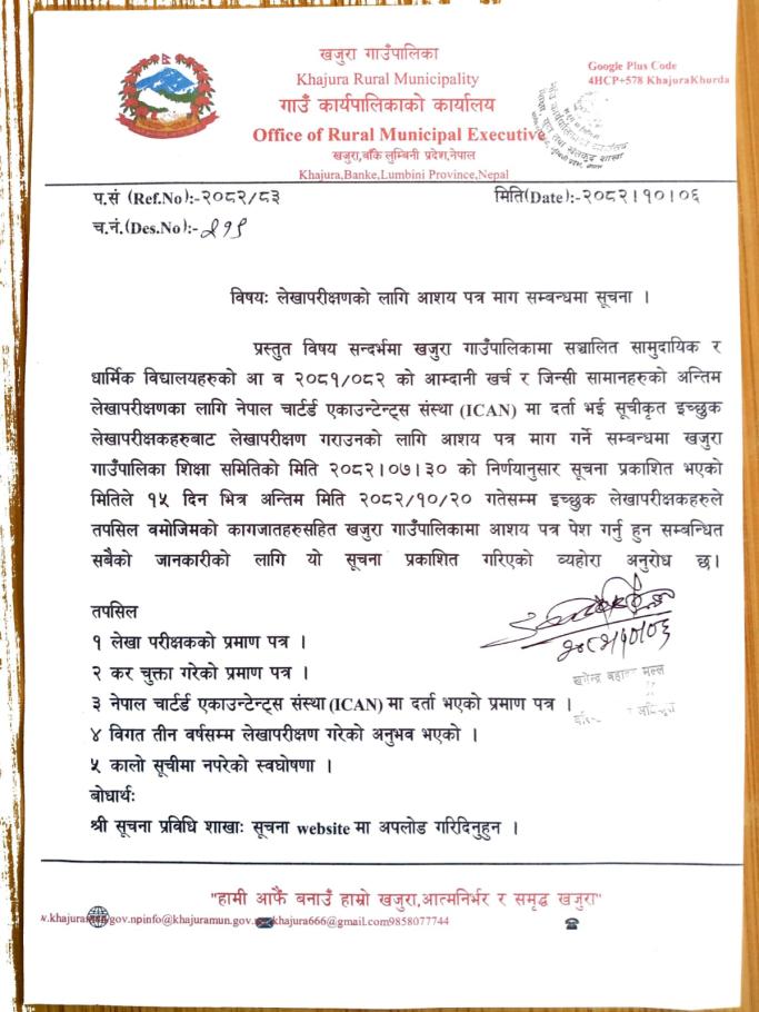 » लेखापरिक्षण लागि आश्य पत्र माग सम्बन्धि सूचना ।।