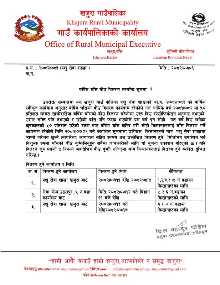 » वर्षिम घाँस बीउ वितरण सम्बन्धी सूचना।।