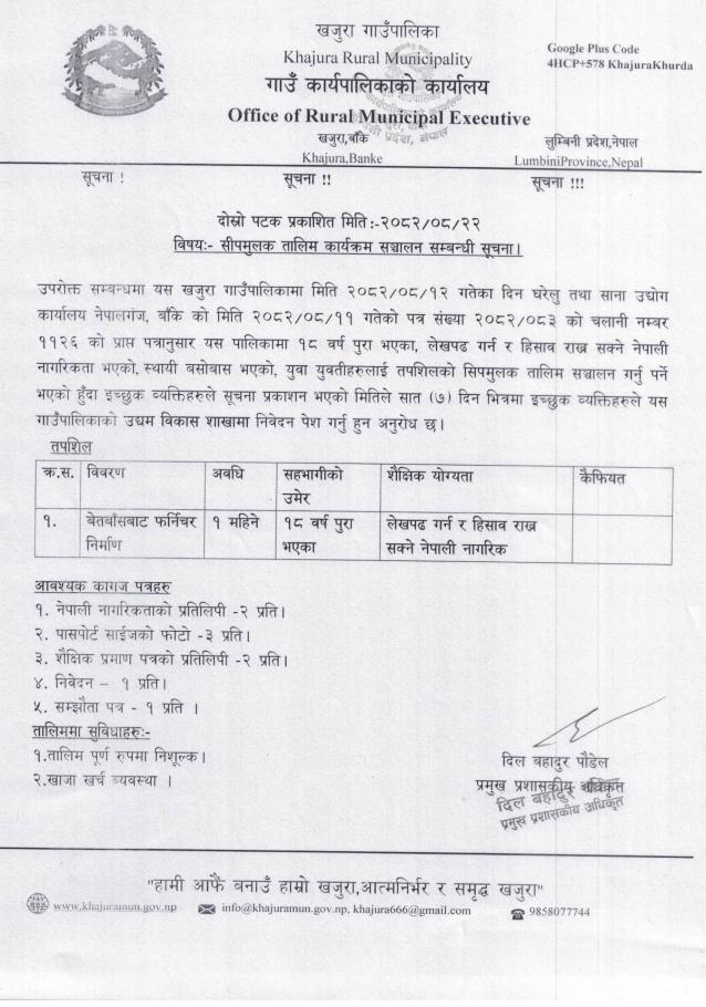 सीपमुलक तालिम कार्यक्रम संचालन सम्बन्धी सूचना ।। (दोस्रो पटक प्रकाशित मितिः२०८२।८।२२)