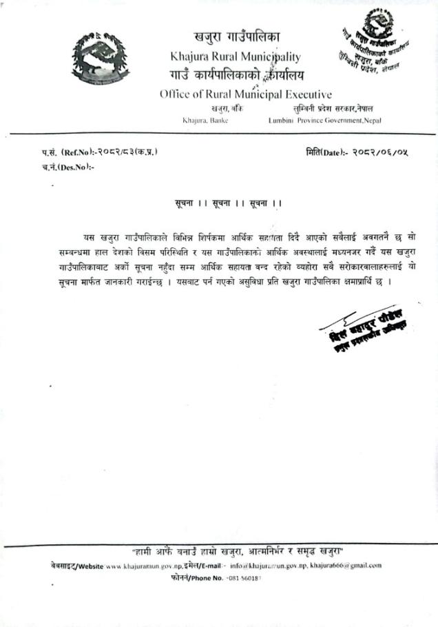 "हामी आफैँ बनाउँ हाम्रो खजुरा,आत्मनिर्भर र समृद्ध खजुरा"