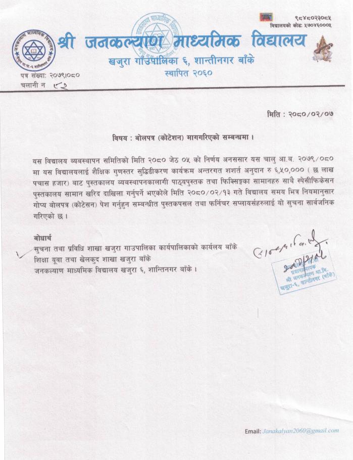 पुस्तकालय सामान खरिद सम्बन्धि कोटेसन पेश गर्ने सम्बन्धि सूचना !!!