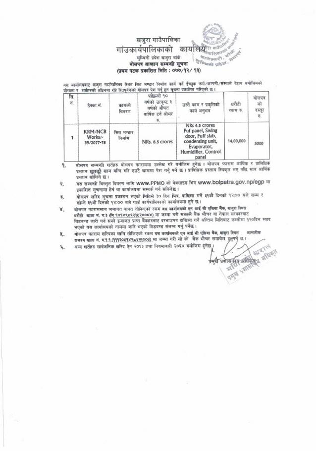 बोलपत्र आव्हान सम्बन्धि सुचना (प्रथम पटक प्रकाशित मिति: २०७७/१२/१३)