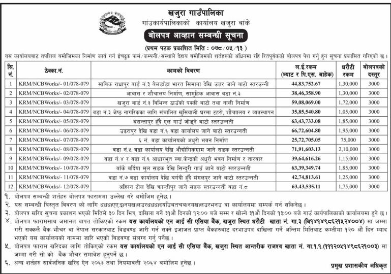 » बोलपत्र आव्हान सम्बन्धी सुचना (प्रथम पटक प्रकाशित मिति-२०७८/५/१३)