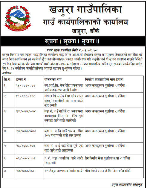 खजुरा, बाँके, लुम्बिनी प्रदेश सरकार, नेपाल
